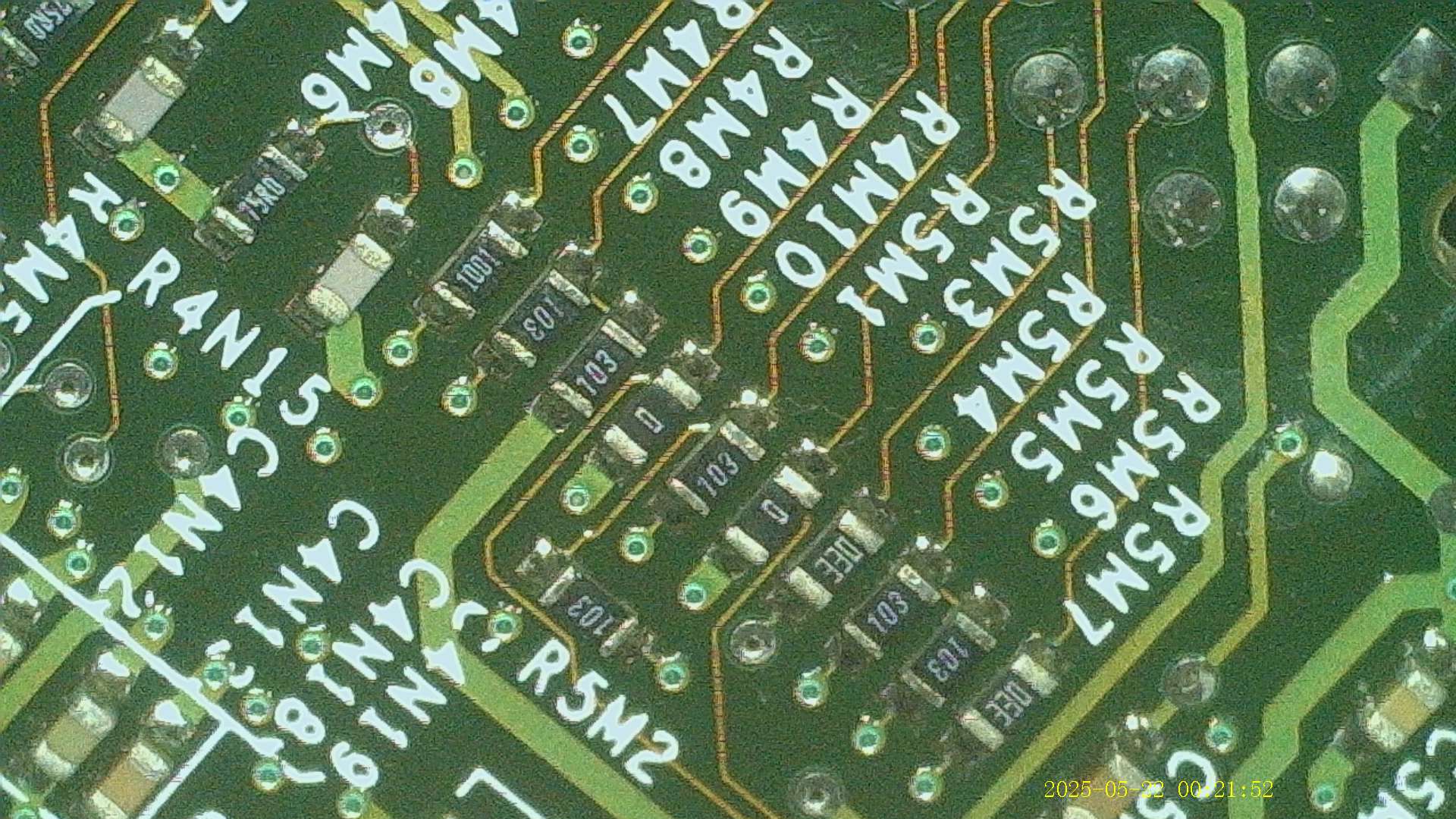 of these resistors, labeled R5M3 and R4M10, need to be removed. They will need to be put back on after flashing. They
